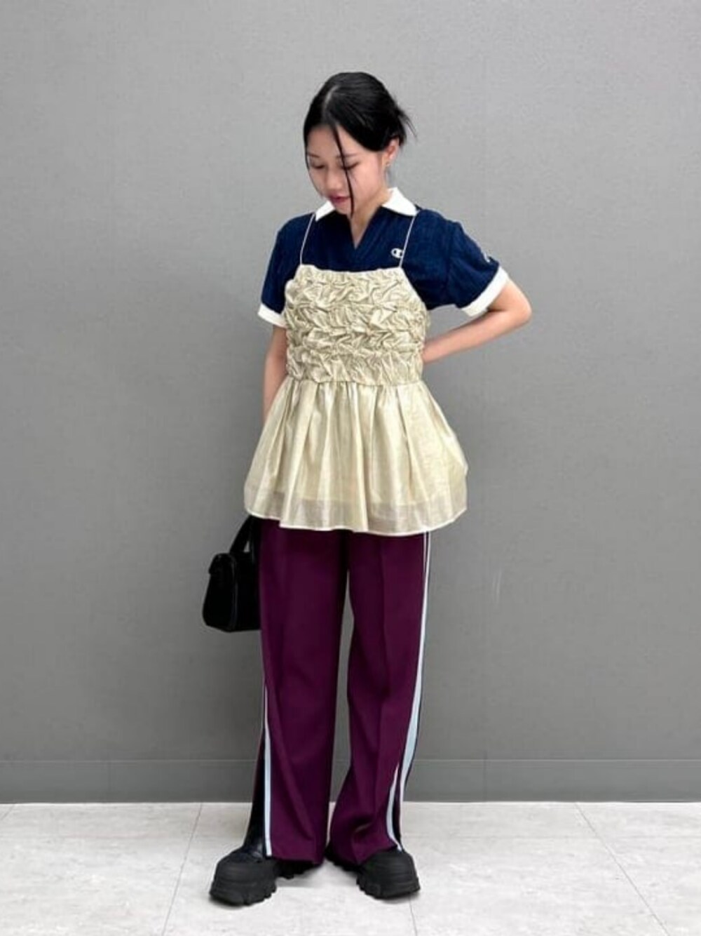 【新作スポーティーコーデ】Tシャツ、パンツ、バッグをスポーティーにまとめてみました!クシュクシュ感のあるキャミソールがとってもカワイイです♡コーディネートのワンポイントに是非! ビームス ストリート 横浜 / サチ