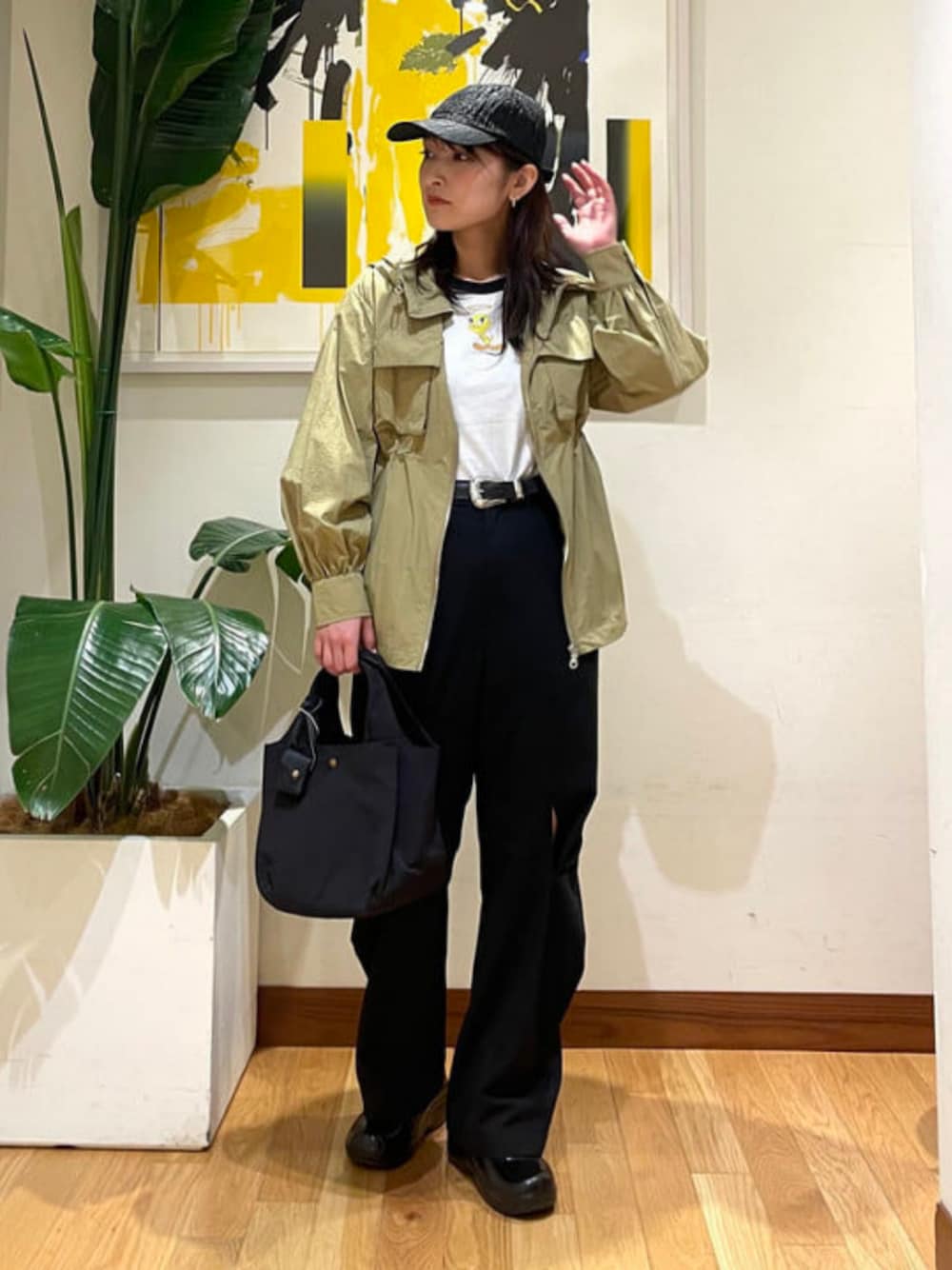 【春のカジュアルスタイル】ウェストをギュッと絞って女性らしく着こなせるナイロンパーカー♡!春に着たいアウターです!パンツのスリットも素肌がチラッと見えて涼しい印象を出してくれます!ぜひ春服購入ご検討ください★ LOONEY TUNES and all related characters and elements ©︎ & ™️ Warner Bros. Entertainment Inc. WB SHIELD:©︎&™️WBEI.(s24) ビームス 二子玉川 / 松本 佳菜子
