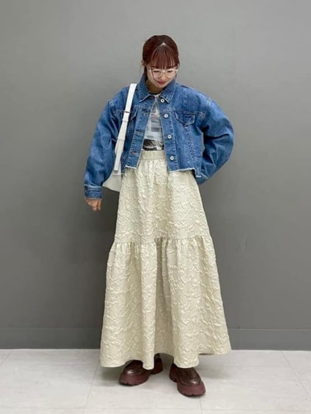 【低身長の方にもおすすめスカート!】153cm/size0を着用しております!足首くらいの丈感なので、低身長の方にもお勧めです◎凹凸のある素材で光沢感もあります!とても軽いので歩く度にふわっと広がるシルエットがとても可愛いですよ〜◎裏地がついているので透け感も問題なし!春夏に大活躍するスカートです!アウターは袖ぐりにゆとりがある為、厚手のトレーナーとも相性が抜群◎短丈のアウターはロングスカートとの相性もよく、バランスがとりやすいです!是非! ビームス ストリート 横浜 / ヒカリ