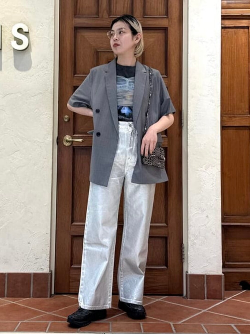 【箔プリントのデニムが再入荷】メタリックシルバーの光沢のあるデニムに半袖ジャケットを合わせてトレンド感を意識しつつも、自分っぽく。グレーやブルーなどの細かい色合わせもポイントです。164cmでパンツとジャケットはどちらもサイズ1を着用。ネット取り置き・ネット取り寄せのサービス店舗でもご覧頂けます。是非ご活用下さい! © 2024 Metallica. Under license to Probity ビームス 吉祥寺 / Nagumo Yuki