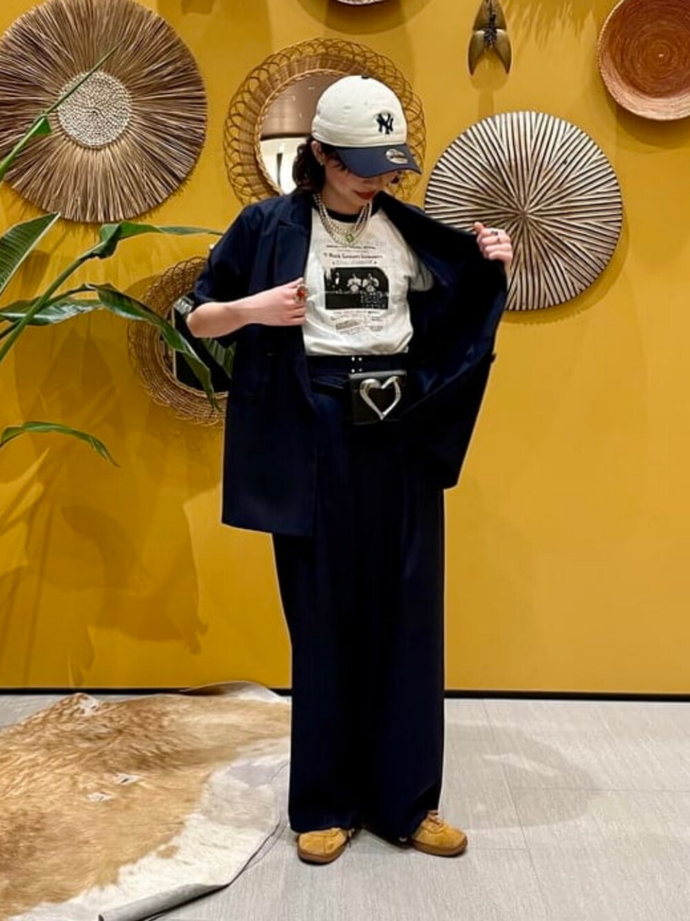 ピンストライプのジャケットとパンツをセットアップで着用しました◎ 【 159cm / jacket・pants 0サイズ 】ゆったりとした幅感、ハイウエストでスタイルアップになるパンツは私の一推しです^^ シンプルで大人っぽいアイテムですが、キャップ、ロックTシャツ、スニーカーと合わせてカジュアルに組むのもかわいいのでは、、!新しく入荷した大きなハートのウエストバッグもとーっても可愛いですよ~♡ ビームス 京都 / アライコナツ