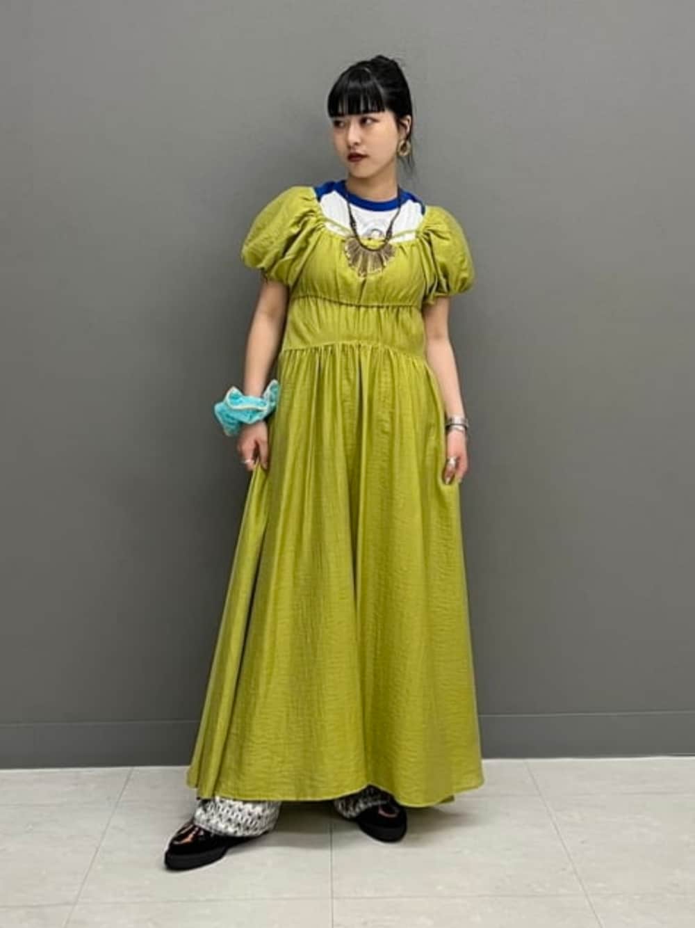 【360度可愛いワンピース】後ろのクロスやパフスリーブなど細かなところにこだわりを感じられるワンピースです♡このようにTシャツや柄パンツなどとレイヤードしても◎ ビームス ストリート 横浜 / シオン