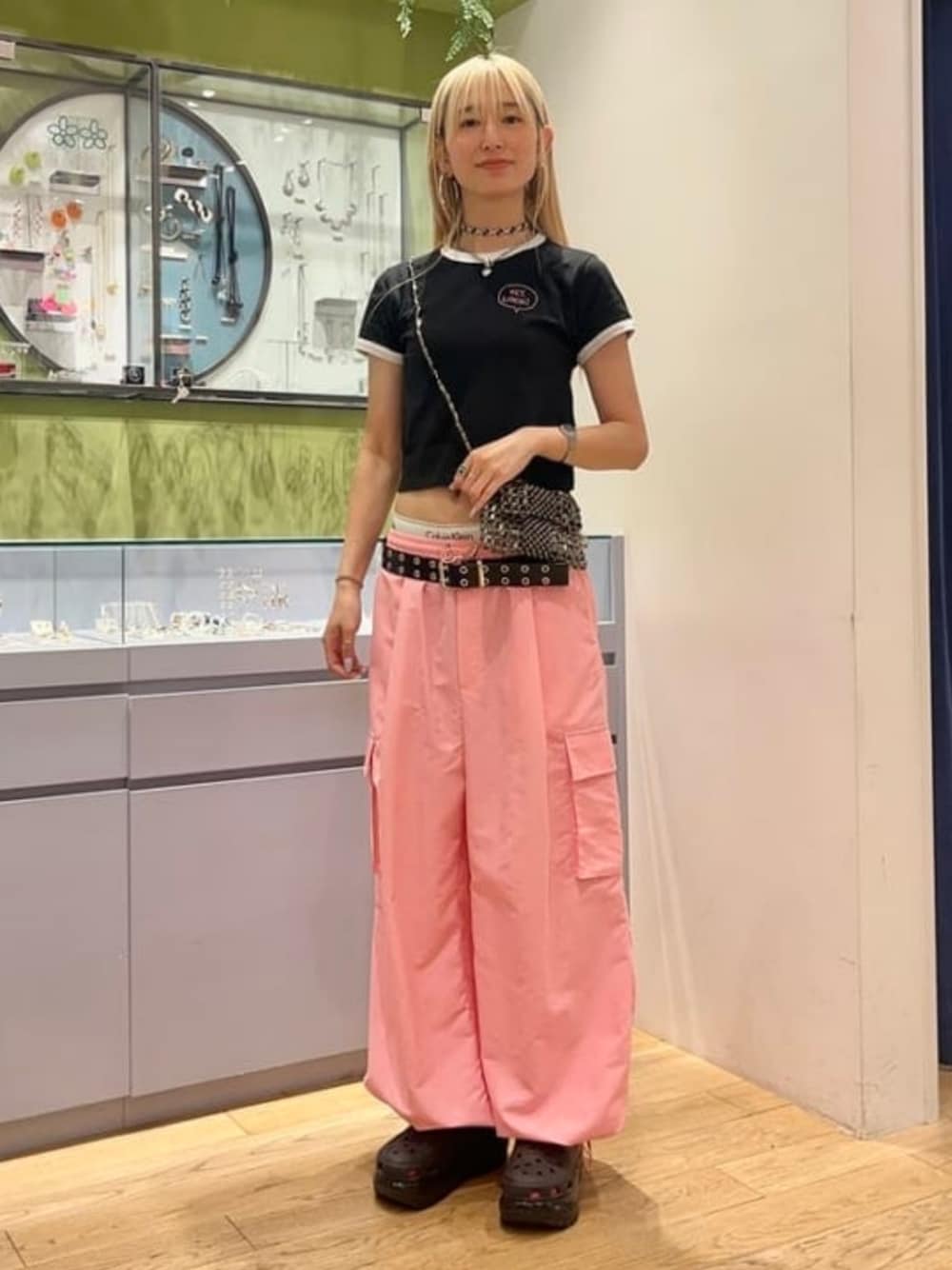 【171cm サイズ1着用】可愛いベビーピンクのカーゴパンツ。しっかりとした生地感ですが硬すぎず動きやすい。長さも十分なので高身長さんにもおすすめ。また、裾部分のドローコートの直接でシルエットも変えられるので気分によって地面すれすれにゆったり着るのも可愛いです〜♪ © JOHN HOLMSTROM レイ ビームス 新宿 / みさみさ