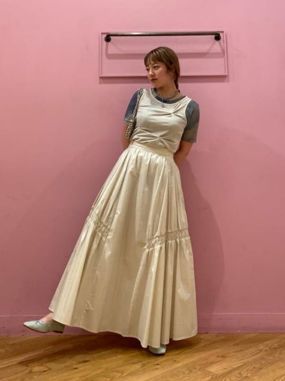 スカートはよぉく見るとキラッとしてて、歩くと動きが出てかわいいですよ〜(サイズ1を着用しております) バッグはショルダーにも出来ます^_^ ビームス 大宮 / 晶