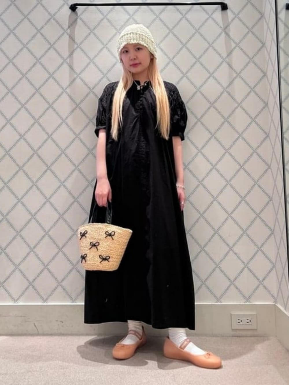 暑い時期にさらりと着られるコットン地のワンピース。ペチコートが付いており、透け感も気になりません◎ワンサイズですが152cm、フラットシューズでも着られます!カゴバッグを合わせてうんと夏らしくしてみました。 ビームス 銀座 / haru