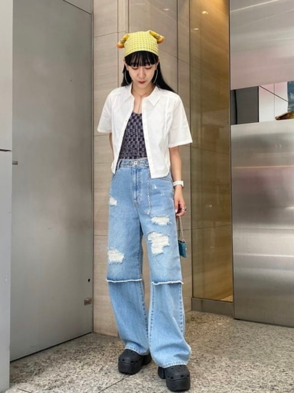 【ヒッピースタイルです ♡】新しく入荷したダメージ加工が施されたデニムパンツをメインにスタイリング ♡一見レイヤードしてる風なデザインがまた可愛い!シンプルにブラウスやTシャツ1枚と合わせてもサマになるアイテムです(﹡ˆoˆ﹡)! ビームス 銀座 / マツド ユメカ