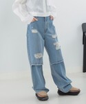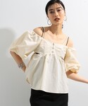 【ビームス 天王寺 デニムスタイリング】ダメージデニムを可愛さたっぷりにスタイリングっ!٩( ᐛ )و ブラウスは152cmでサイズ0を着用しています!肩の部分のボタンを外してオフショルダーで着るのが可愛くておすすめ!インナーにはキャミソールやレースアイテム、写真のようなピタッとしたTシャツがおすすめ♡デニムはシルエットも綺麗で、ダメージデニムなのに上品に見えるのがポイント♩ ビームス 天王寺 / カラツ ミナ