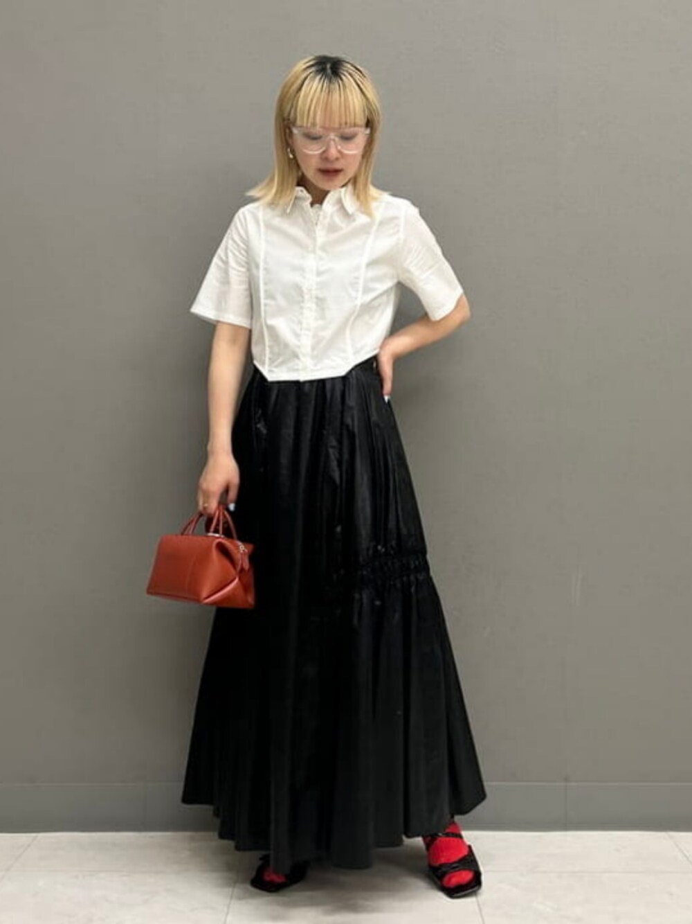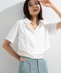 【珍しくシャツを♡】珍しくシャツを着てみました!♡短丈のシャツはあまり持っていないので、新鮮な気分です。ちょっぴり知的な感じになりますねー!全体的におとなしめだったので、赤いソックスとリボンミュールで可愛らしさをプラスしました! ビームス ストリート 横浜 / ナカノ アイ