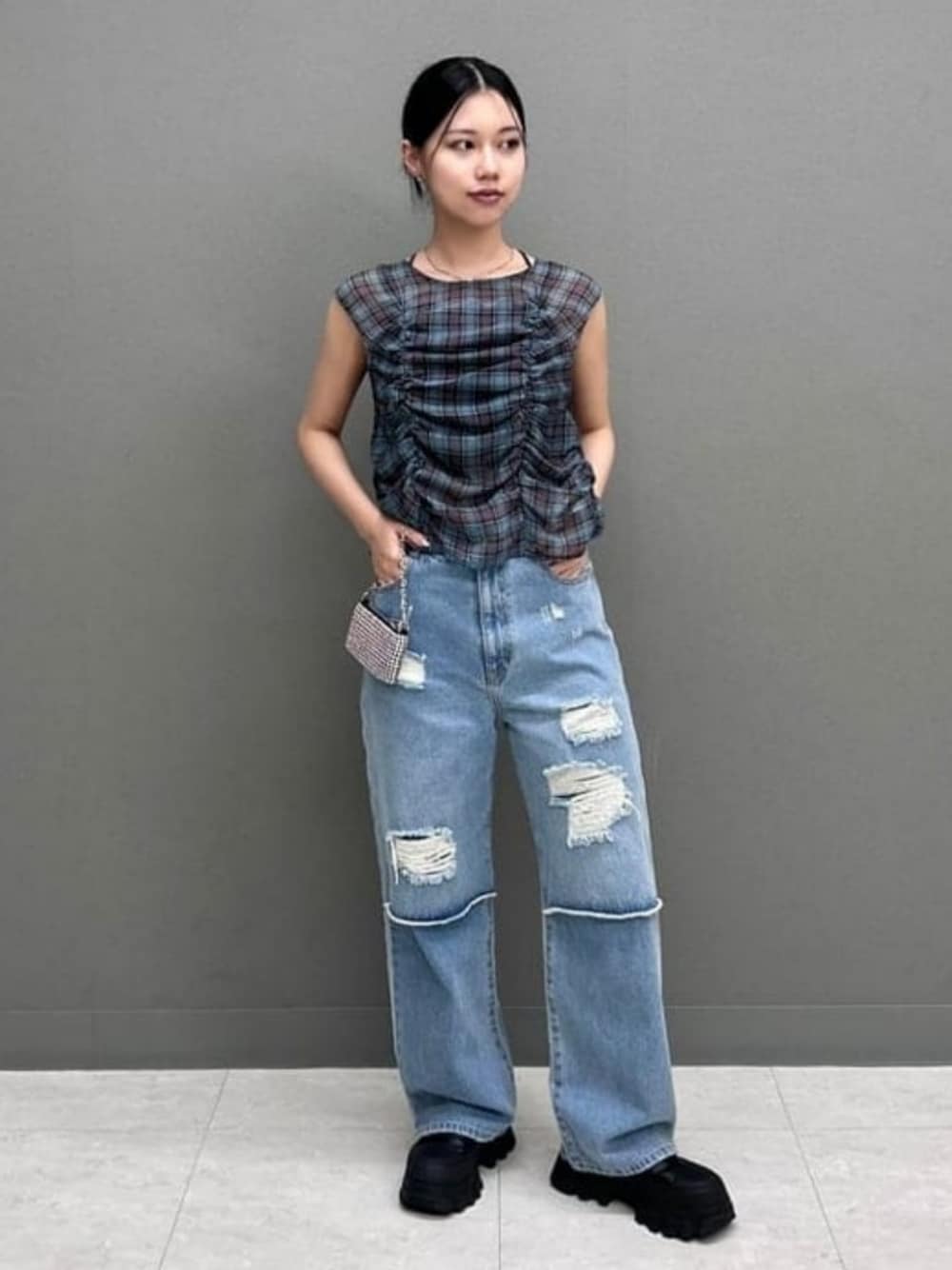 【イチオシブラウス♡】シアー生地にチェック柄がカワイイです♡ Tシャツやタンクトップに合わせたレイヤードスタイルもおすすめです!前後着用可能です◎ぜひ^_^ ビームス ストリート 横浜 / サチ