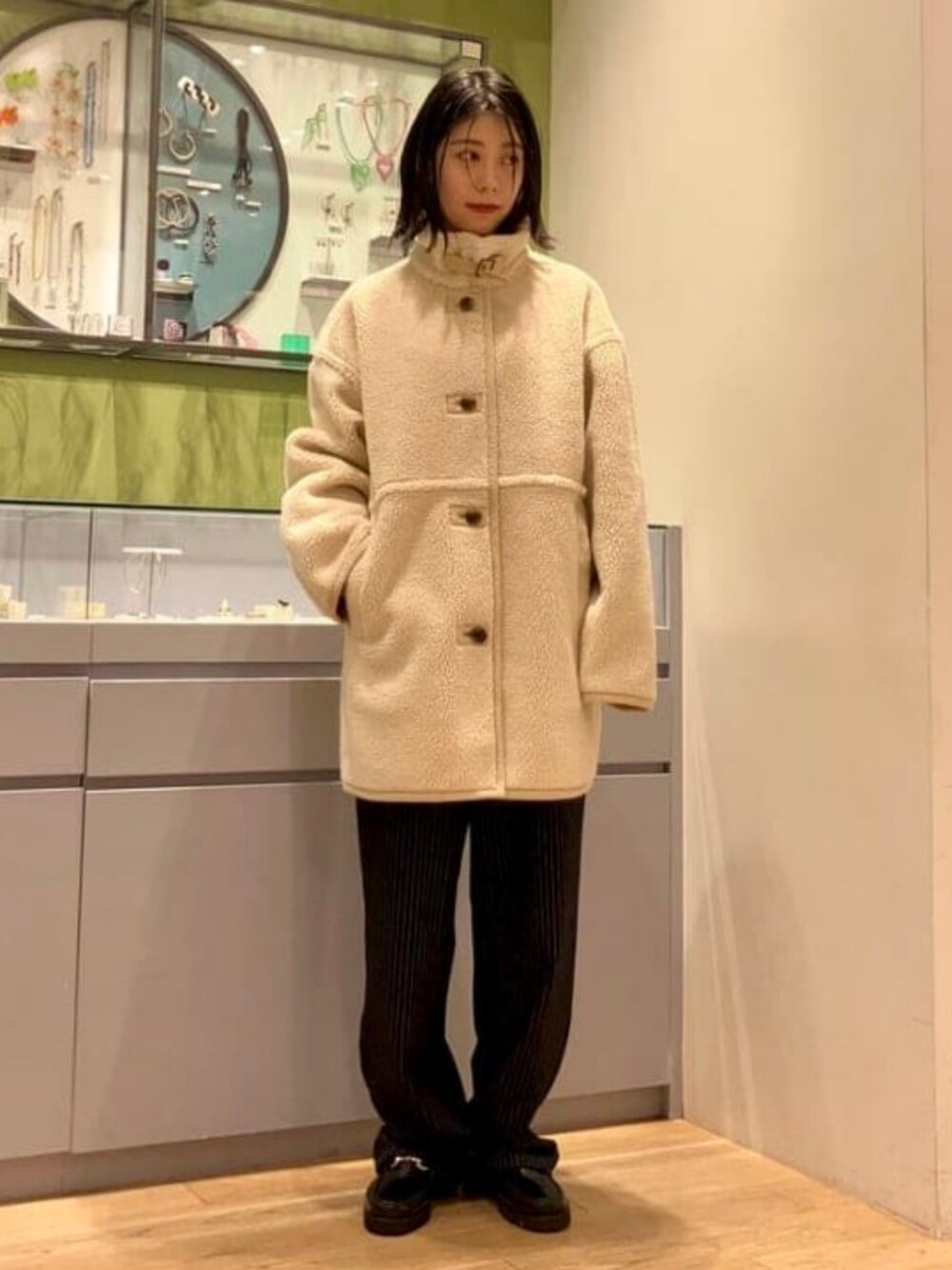 【予約キャンペーン開催中】冬になると白やアイボリーを着たくなります...♡暖かく柔らかな色が可愛らしい印象を与えてくれますよね♡ちょっとルーズな感じがたまりません。お尻周りもすっぽり隠れて、襟を立てれば防寒バッチリ!厚みのあるボア素材がしっかりあったかいです〜 Ray BEAMS / おミツ