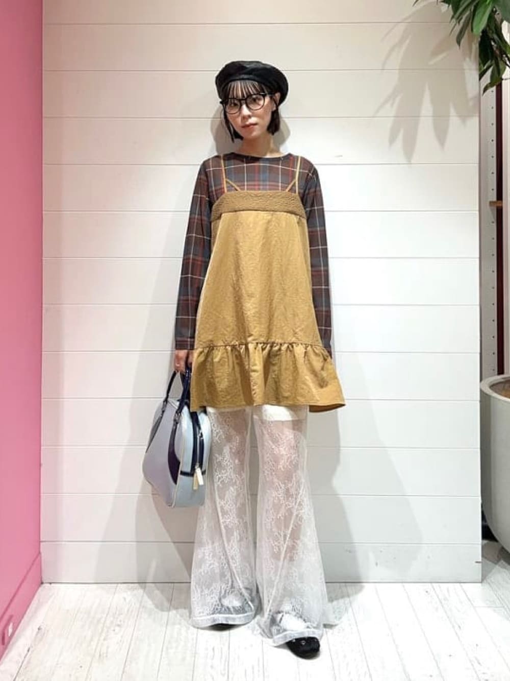 身長163センチ、キャミワンピは0(S)サイズ着用。秋を意識した色使いですが、薄手の素材のものばかりなので、これから取り入れていくのにはもってこいのアイテム達ばかりです◎それぞれで色んなレイヤードを楽しんでいただけると思います! ビームス なんば / 寺澤 葵
