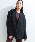 【ジャケット好きにはたまらない!ビックシルエット】クールにオールブラックで。差し色にレッドをチョイス♡♡♡スカートはSサイズであえてジャケットで隠れるくらいが好きです。 Ray BEAMS / Mai