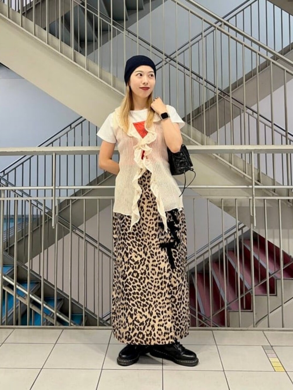 【攻め攻め!】ヒョウ柄の〈GHOSPELL〉のスカートに赤のランジェリーキャミを合わせた少し強めなコーデです♡スカートはスリットとリボンのおかげで重たくなりすぎず挑戦しやすいかと思います!ラッフル付きのトップスを羽織ることで更に大人っぽく仕上げました〜!!◎ ビームス ストリート 梅田 / yane