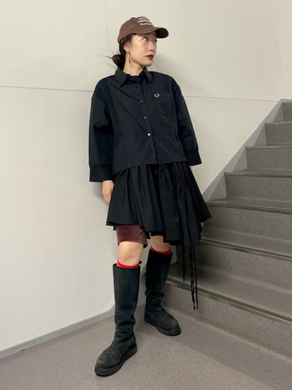 【\FRED PERRY/昨年買いそびれた方集まれ♡】今年は新型シャツがおすすめ!(ONESIZE / 身長157cm)ボディーのリブの切り替えと袖口がシアー素材と切り替えになっていてメリハリが効いている可愛いアイテムです☺︎短すぎないクロップド丈になっているので、ワイドパンツやスカートとの合わせも抜群〜!ブーツと合わせて秋気分です\( ˆoˆ )/ ビームス 新丸の内 / ハルキ モモナ