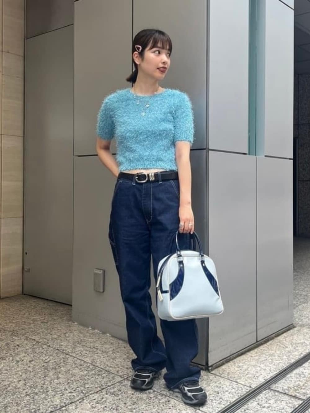【ブルー♡】をポイントにっ!トップスは肌触りよ〜〜〜く、着心地◎です♪着丈はおへそくらいで合わせやすいです〜!<BEAMS BOY>のデニムを少し腰履きにして、おへそちらっと( ◠‿◠ ) ビームス 銀座 / Marin