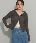 Ray BEAMS(BEAMS WOMEN)のニット/セーター「ラメ リブ ジップ ビッグ カラー ニット」を使ったコーディネート
