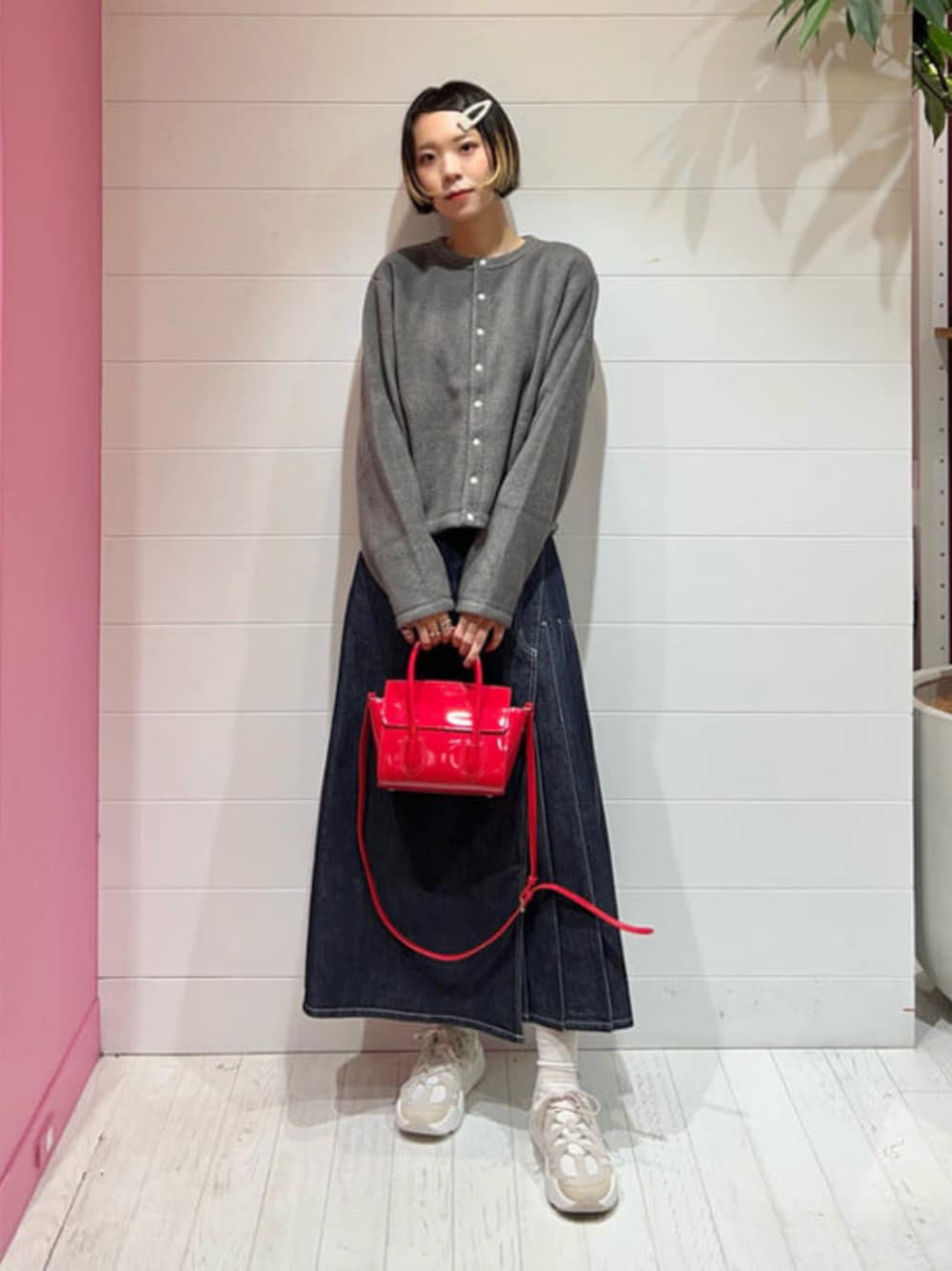 【ORCIVAL フリースカーディガン】フリースですが、クルーネックでキレイめなデザインになっていて、普段着として着やすいと思います◎身幅はややゆとりのあるサイズ感で、さりげないロゴがかわいいです☺︎今回はBEAMS BOYのデニムスカートに合わせてカジュアルにしてみました☺︎ ビームス なんば / テラザワ アオイ