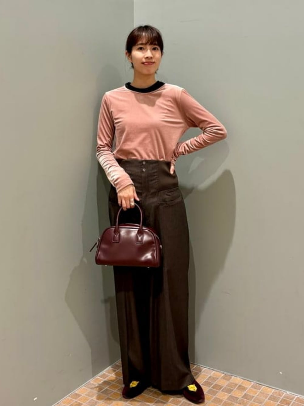 秋らしい色味でコーディネート。〈Ray BEAMS〉オリジナルのパンツをリアルバイしました!いつもは1のサイズを選びますが、今回はベルトループもなく、長さがしっかりある為、サイズ0を選びました!リブ部分も締め付けがないので、リラックスしてはけますよ♡ ビームス 池袋 / はやしあかね