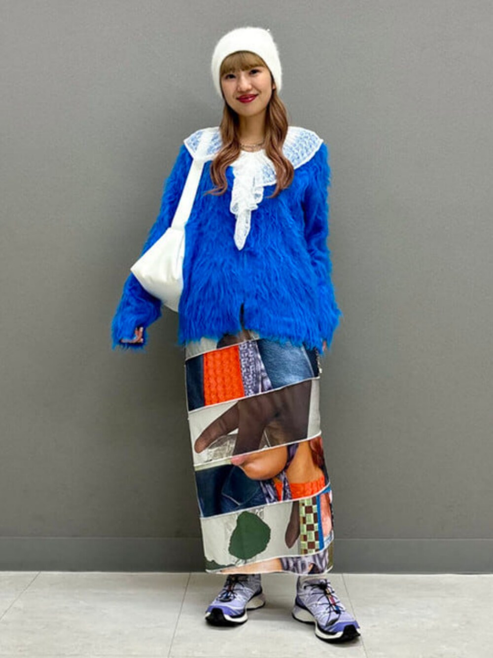 【私のおすすめカーディガン♡】こちらは手洗いでお手入れできるカーディガン!ご自宅で手入れできると嬉しいですよね◎身幅にはゆとりがあるので着心地もとても楽です!お尻がすっぽり隠れるくらいの着丈でした!鮮やかなブルーは1着あると気分も上がりますね〜!かぶっているビーニーはアンゴラを使用した長めの毛足です!可愛いのに暖かい…!冬のマストアイテムです♡是非! Ray BEAMS / ヒカリ