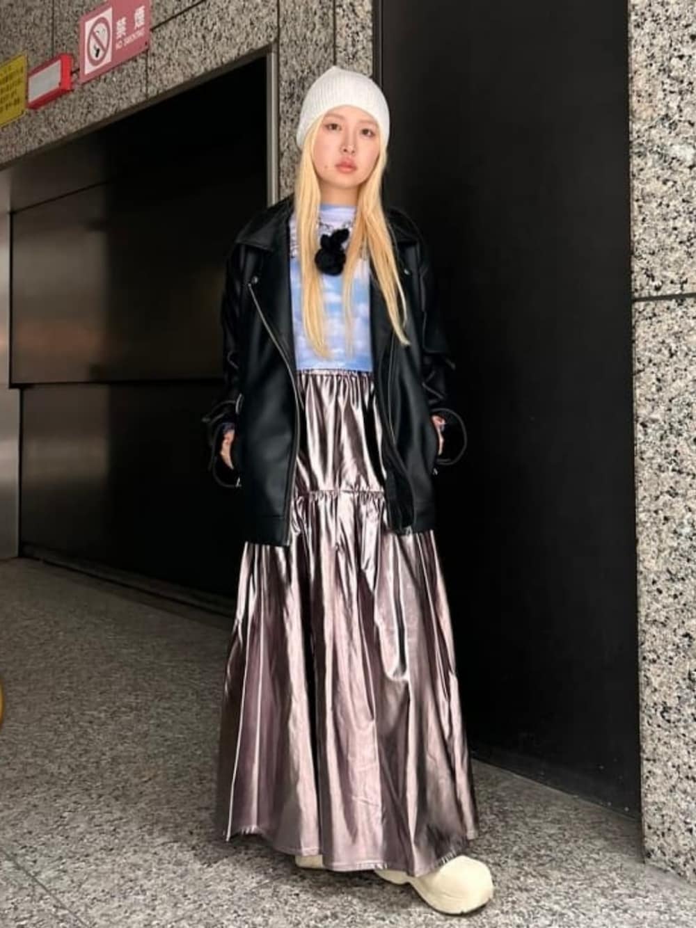 ライダースが欲しくなる時期です。こちらは潔いほどのオーバーサイズ。わたしは152cmであえて大きいサイズ1をメンズライクに羽織ってみました˚✧₊⁎見た目ほど重さも気にならず、着やすい!ビーニーとスカートでキラキラ華やかなスタイリングに ビームス 銀座 / haru