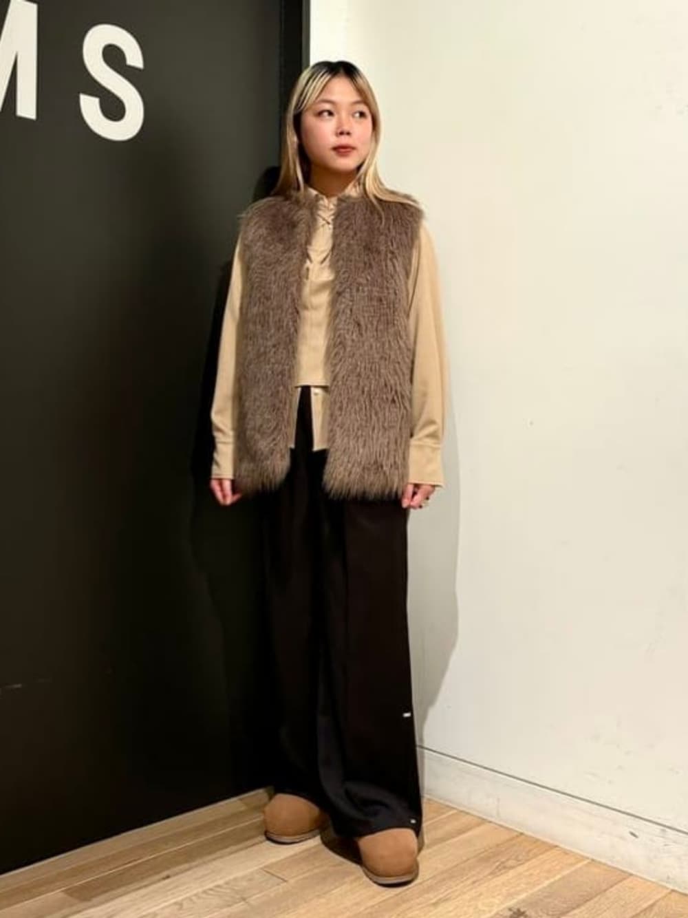 Ray BEAMS(BEAMS WOMEN)のベスト「フェイクファー クルーネック ベスト」を使ったコーディネート