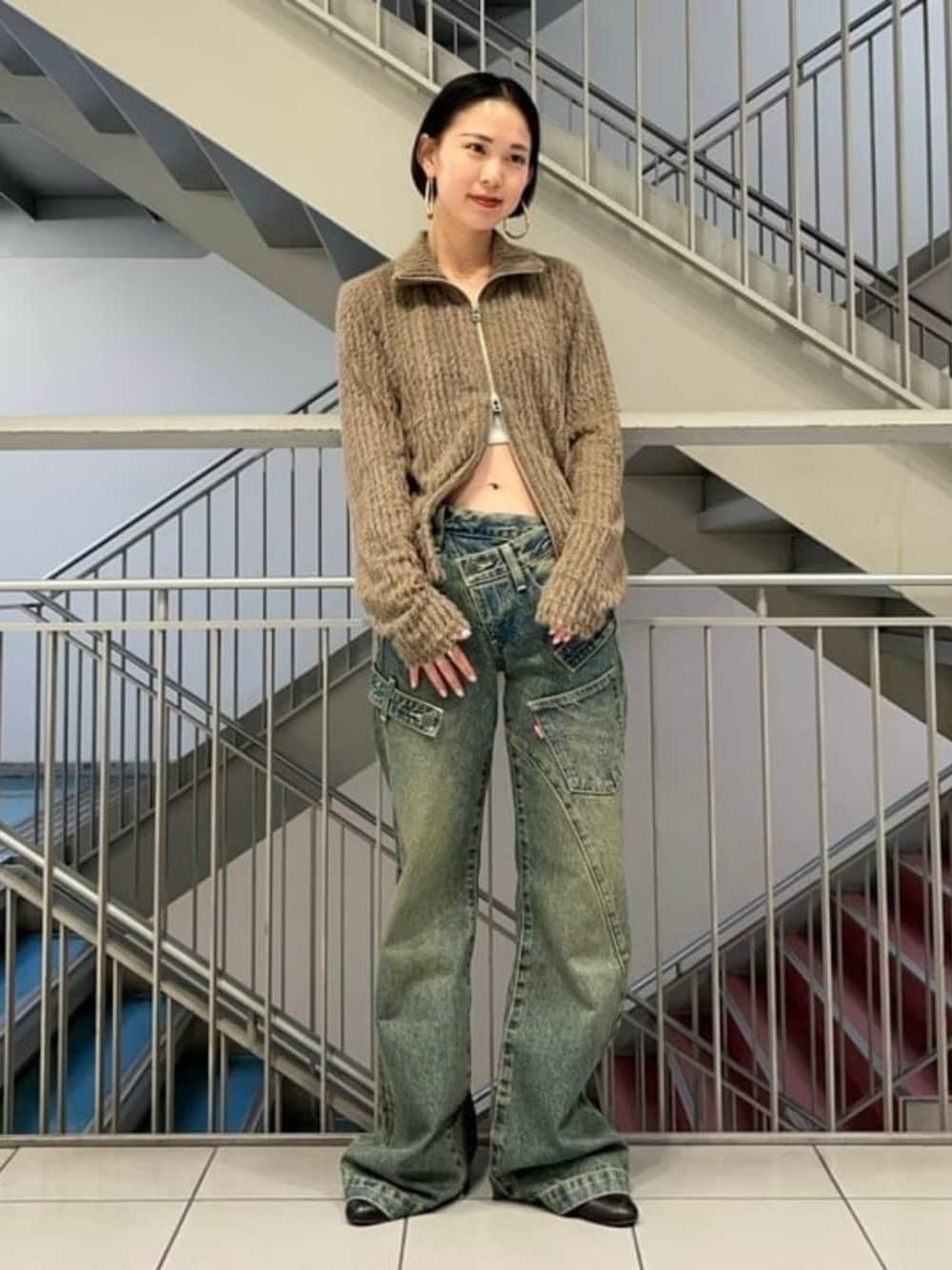 Ray BEAMS(BEAMS WOMEN)のカーディガン/ボレロ「シャギー ハイネック ジップ カーディガン」を使ったコーディネート