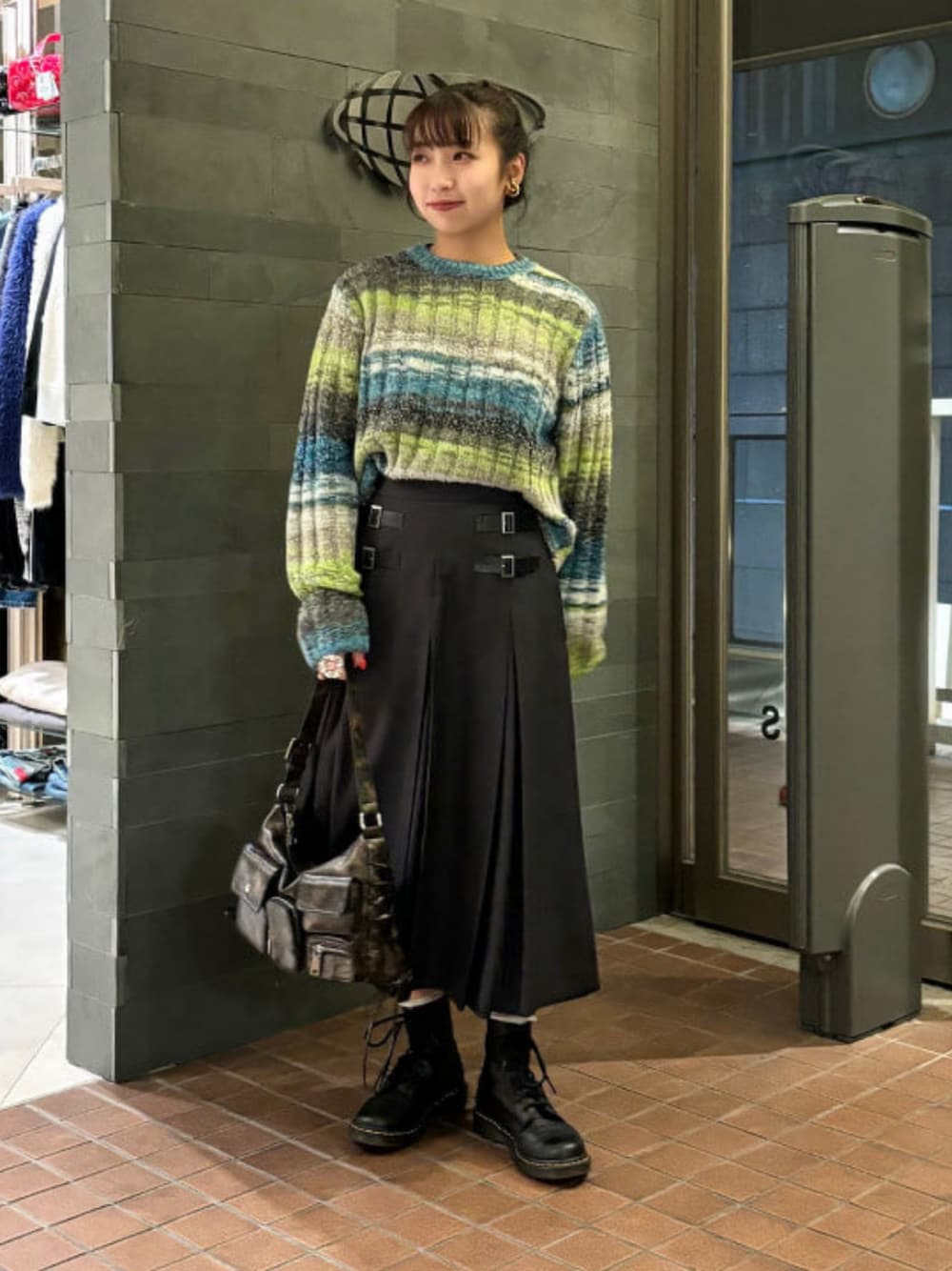 グラデーションのデザインが印象的なニットを着用してみました☆ボトムスが合わせやすいサイズ感で着心地も抜群です◎ニットのグレーの色に合わせてスカートもグレーにしました♪ ビームス 松山 / 石原 妃隻