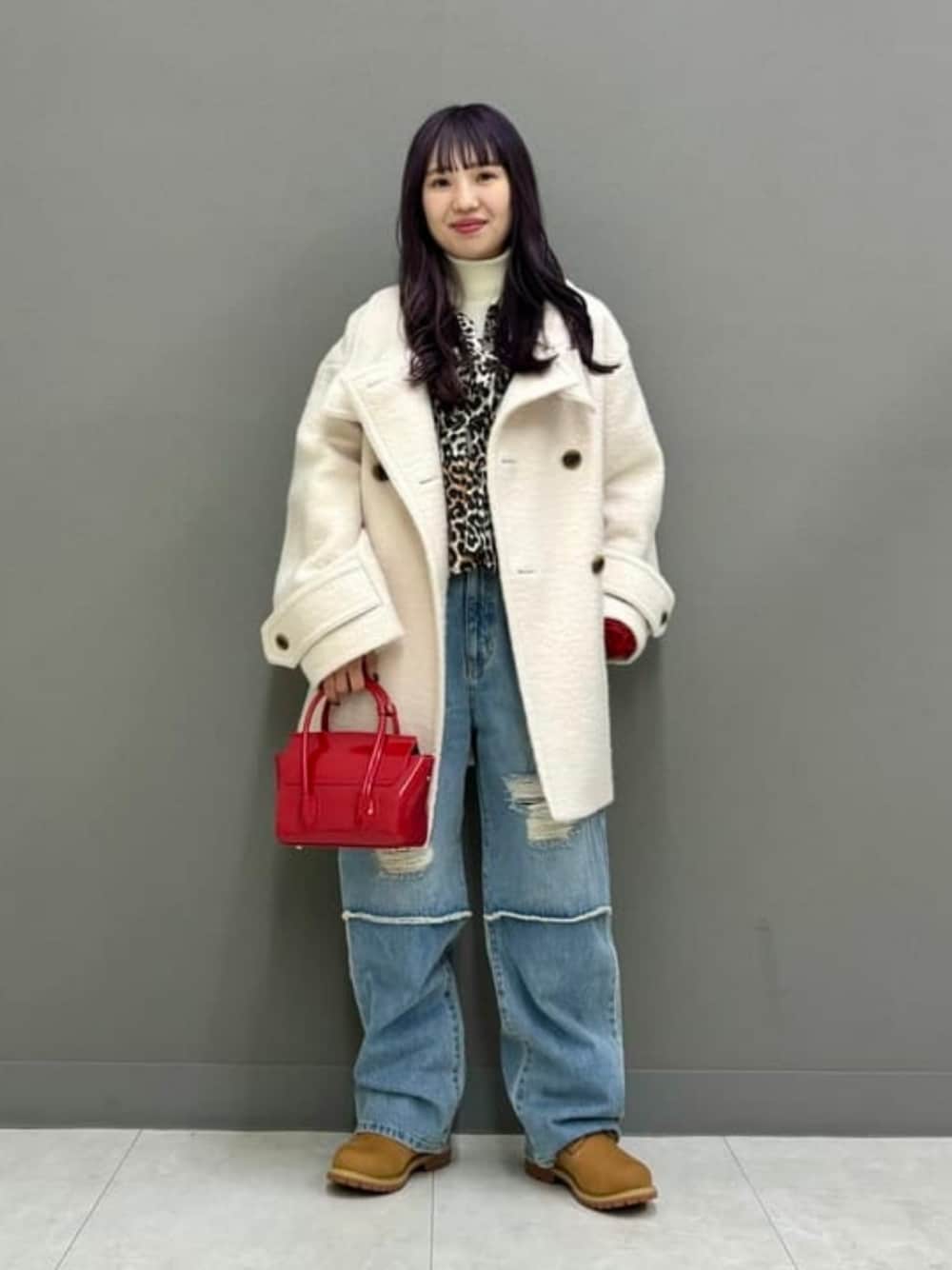【ハーフコートも可愛い!】デニムと合わせてカジュアルな印象で着用してみました◎こちらは身幅が広い為、厚手のニットやスウェットとも合わせやすそうです…!!首元はスタンドカラーとしても着用できる為、上まで閉めて頂くとマフラーなしでも十分暖かいですよ!2枚着用しているように見えるデニム!スッキリと下に落ちるシルエットがお気に入りです◎是非!タートルネックは白もリアルバイしました!締め付け感もなくゆったり着用できるのが個人的なお勧めポイントです♡ ビームス ストリート 横浜 / ヒカリ