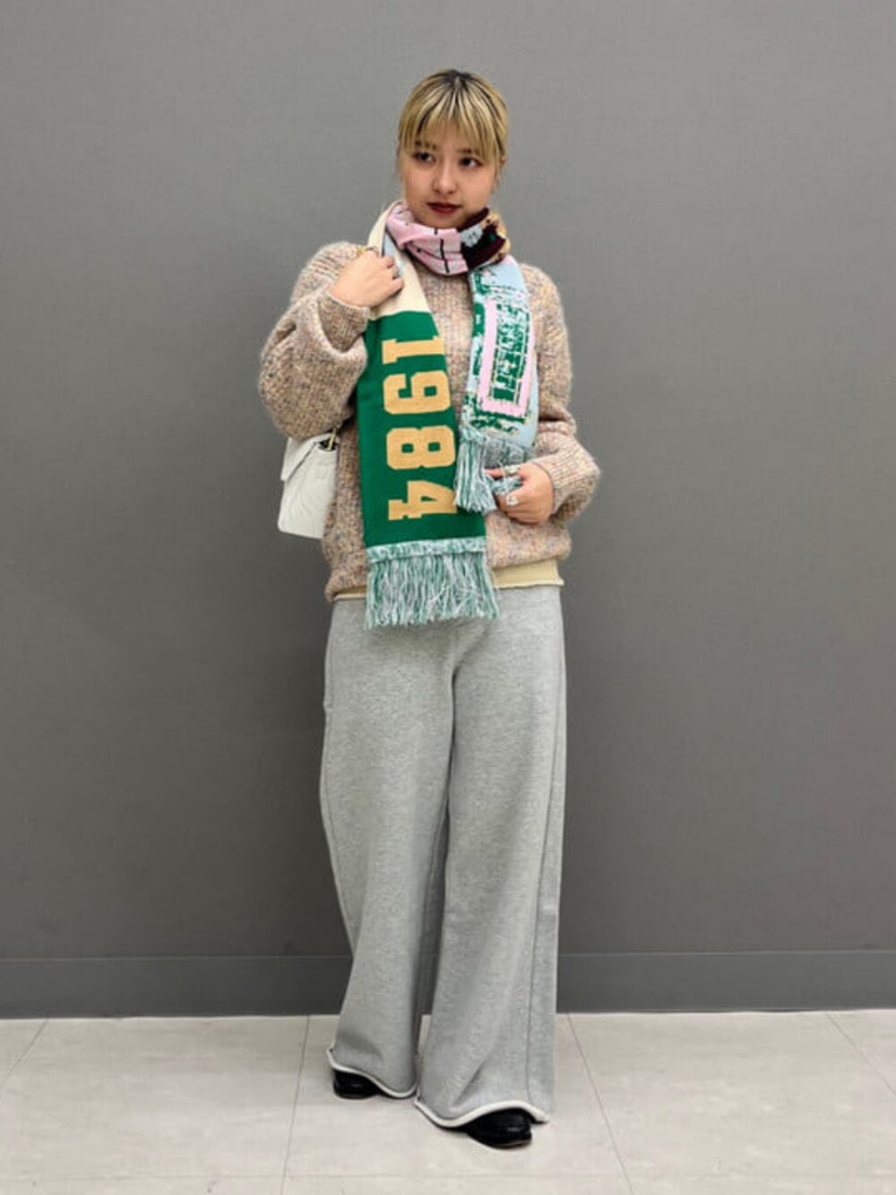 【メンズニット】ユニセックスで着れるデザインとサイズ感です(Sサイズ着用)。あえてMサイズにしてゆるっと着るのも◎レディースアイテムでしっくりくるものがなかったら、メンズアイテムを覗いてみるのもおすすめ。レディースが着るからこそ可愛いニットなどたくさん揃ってます。サッカーマフラーは間違いなくこの冬活躍するアイテム。毎日着て飽きてきたコートの首元に巻くだけで、アクセントになり気分転換できます◎ ビームス ストリート 横浜 / シオン