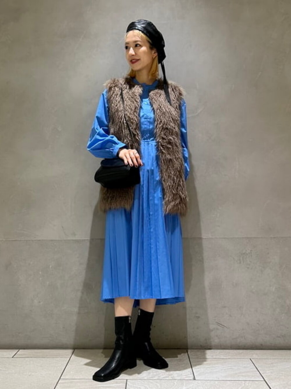 【定番ワンピースの着回し紹介☺︎】 〈Ray BEAMS〉では定番のプリーツ切り替えワンピース♡ 今回はファーベストを合わせることで綺麗めに合わせてみました! 小物をレザーにすると一気に雰囲気が纏まります!おすすめですよ! ビームス 立川 / ササキ