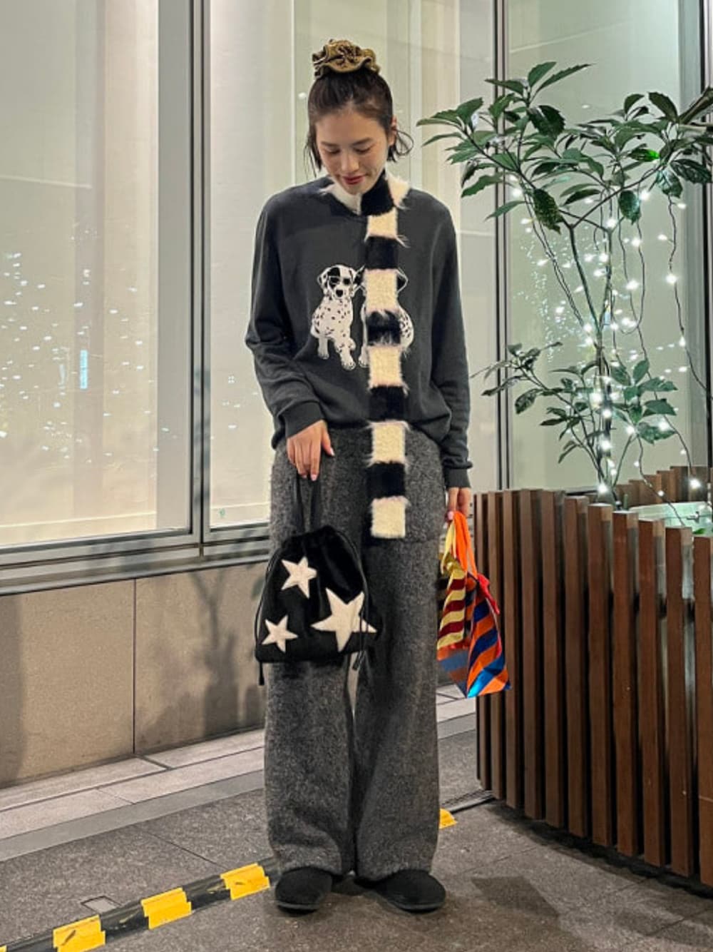 Ray BEAMS(BEAMS WOMEN)のマフラー「スリム ニット ボーダー マフラー」を使ったコーディネート
