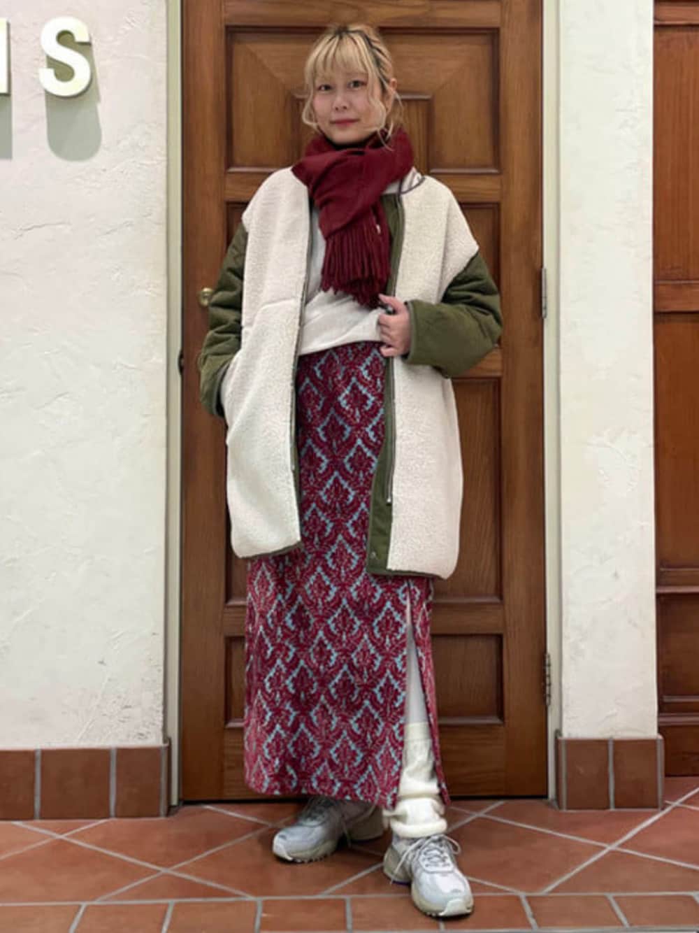 165cm着用【バーガンディのススメ】最近は無意識にクリスマスっぽいカラーリングを選んでしまいます♩赤は赤でもバーガンディなら子供っぽくならず、オトナな雰囲気に。スカートはあえて横スリットになるように穿きました。 Ray BEAMS / はっとり