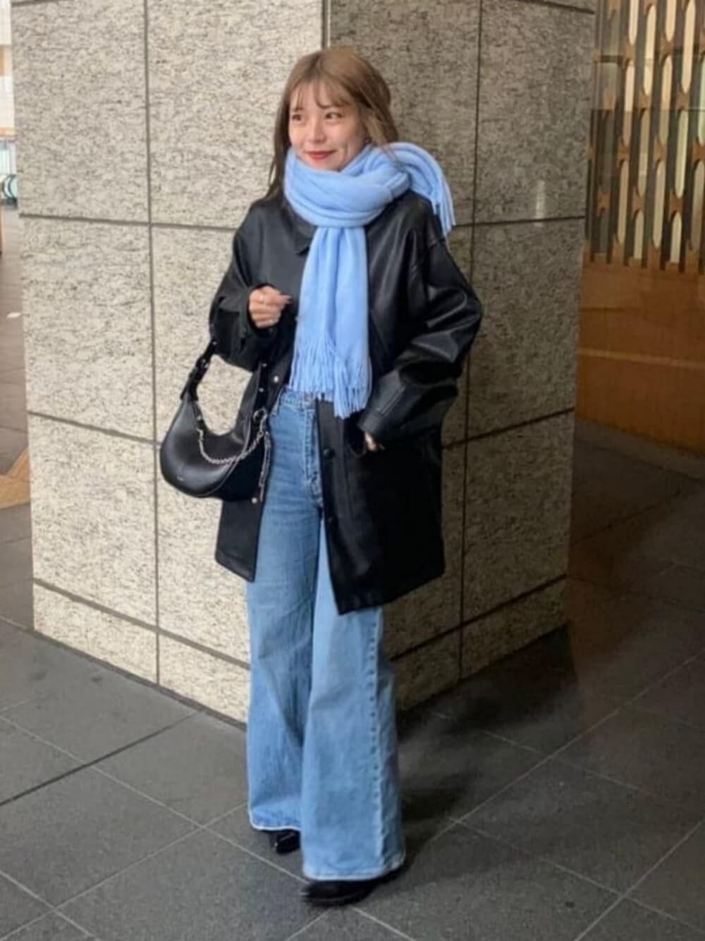 【洗えるマフラー♡】今年も大人気なこのマフラー。 私は水色推し!!!ふわふわ柔らかくて、おまけに洗えるなんて最高です( ◠‿◠ )柔らかな素材のアイテムはこうしてレザーアアウターと合わせると自分らしくて好きですっ ビームス 梅田 / mayuko shono