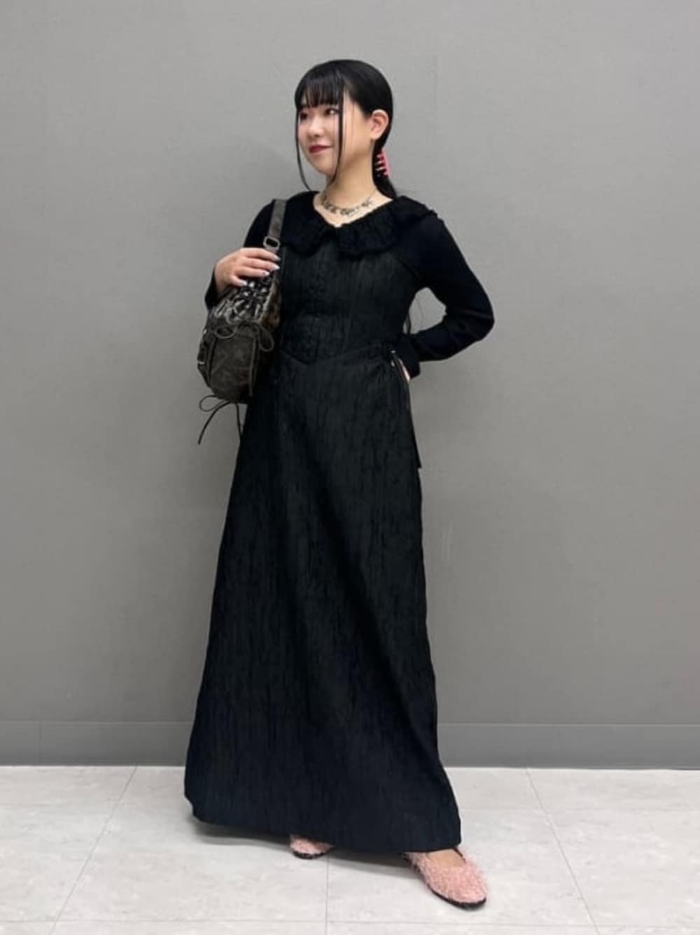 こちらのワンピース、本日よりお求めやすくなっております♡シルエットがとても綺麗でウエストをキュッとさせてくれます!ウエストのアジャスターでの調節も可能です!!オールブラックでまとめ、足元はピンクを!私的に新鮮なコーディネートです! ビームス ストリート 横浜 / 岩岡 南菜美