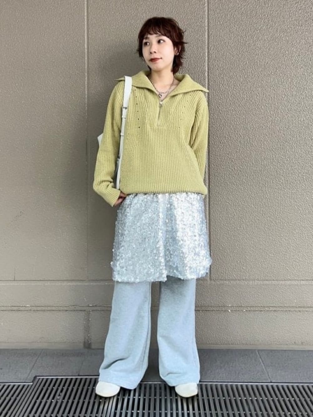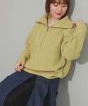 ZIPで抜け感も出せるニット☆結構厚みあるので閉め切らずにネックレスを見せて着るのがユキノのオススメです。首周り寒くなったらハイネックでレイヤードするのも◎パンツは裾が少しフレアになっていて、着回し抜群のアイテムです♡ ビームス 梅田 / ユキノ