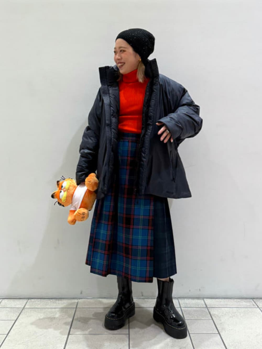 スポーティなアウターには、キルトスカートを合わせてRay BEAMSらしいMIXスタイルに。Marmotのプリマロフトジャケットは、ラグランスリーブで肩周りにとてもゆとりがあります!厚手のニットやスウェットの上から、サッと羽織れて通勤にもオススメ。インナーはホリデーシーズンを意識したカラーリングで合わせました♡ ビームス 静岡 / 坂田 彩