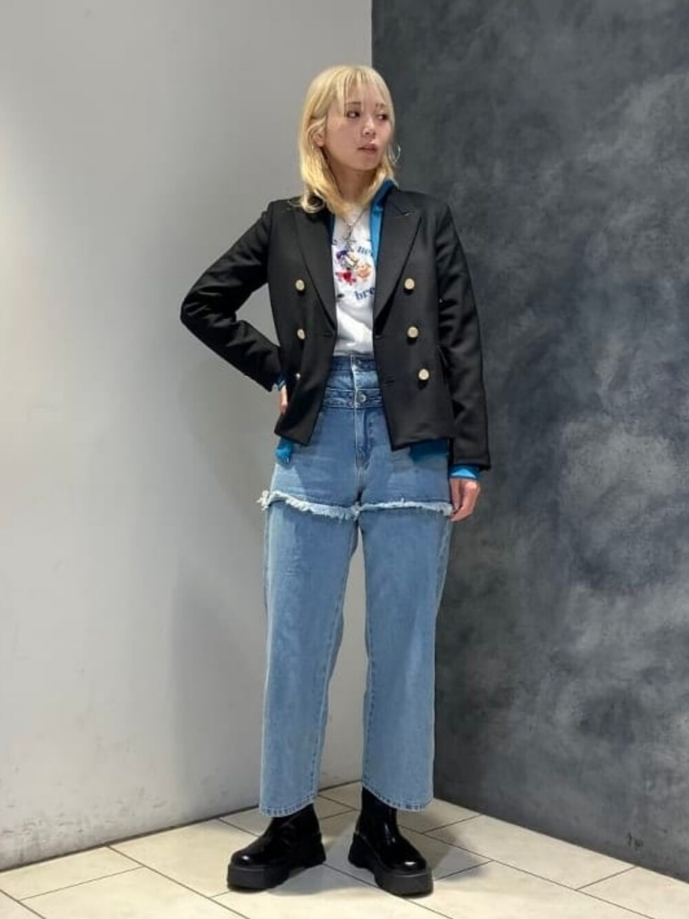 ジャージにジャケットのバランス好きなんですよねぇ。パンツの丈が171cmのシマダには短いなと感じますが、ブーツで誤魔化す荒技です。だってパンツ履きたかったんだもんっ。 ビームス 立川 / シマダリツコ