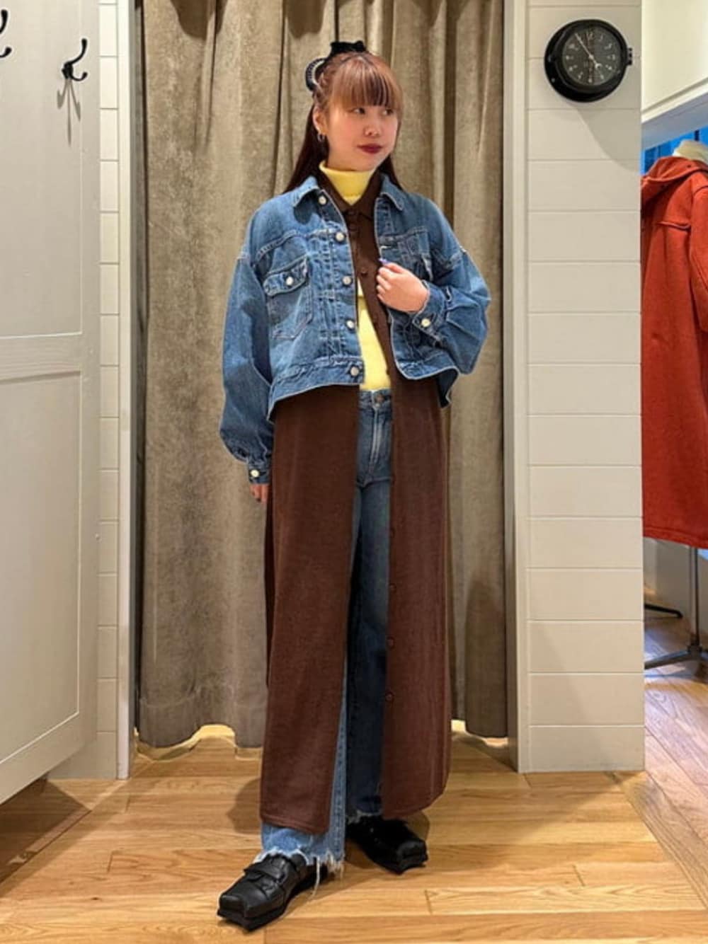 【デニム!!】〈RED CARD TOKYO〉のデニムジャケットとパンツをセットアップ風に合わせてみました♡着用しているジャケットは丈短めで全体的にゆったりとした形なので着用しやすいのにスタイルアップも叶う素敵なジャケットです♡今時期はコートの下に仕込んで、春先はアウターで着用するのが待ち遠しくなります。 ビームス 二子玉川 / まあや