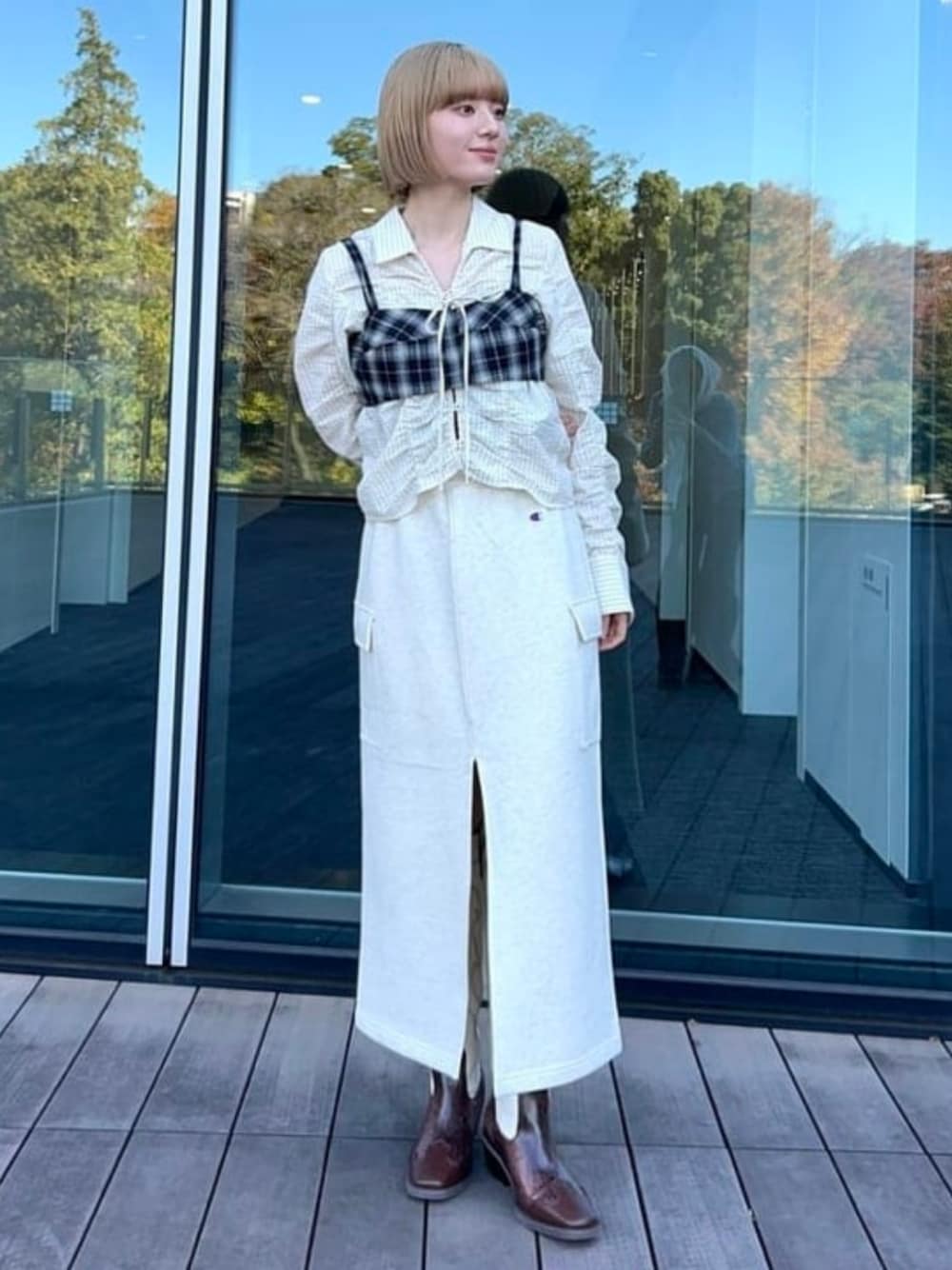 Ray BEAMS(BEAMS WOMEN)のキャミソール「チェック ビスチェ」を使ったコーディネート