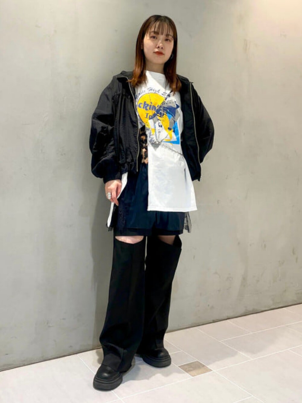 【こってこてレイヤード】普段あまりプリントTシャツを着ないカタヤマですが、〈77circa〉のリメイクTシャツはビビっと来ちゃいました〜。アソートなので柄もサイズ感も1点ものです…!リアルバイしたレオパードのシアーロンTをレイヤードしてよりロックに合わせました!そしてパンツもよーくみるとレイヤードしてます…!レイヤード大好きなのでついつい重ね着しがちです◎ Ray BEAMS / カタヤマ アヤ