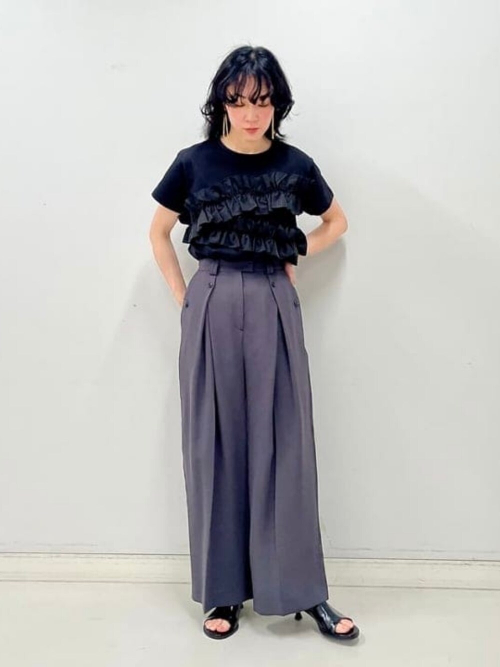 《2nd delivery》この雰囲気、相変わらず好きです。可愛いフリルに合わせるのは、かっこいいワイドなパンツ。そして合わせるヒール。レディーライクな雰囲気がありつつも大人な感じがいつまで好きみたいです♡ Ray BEAMS / kigo