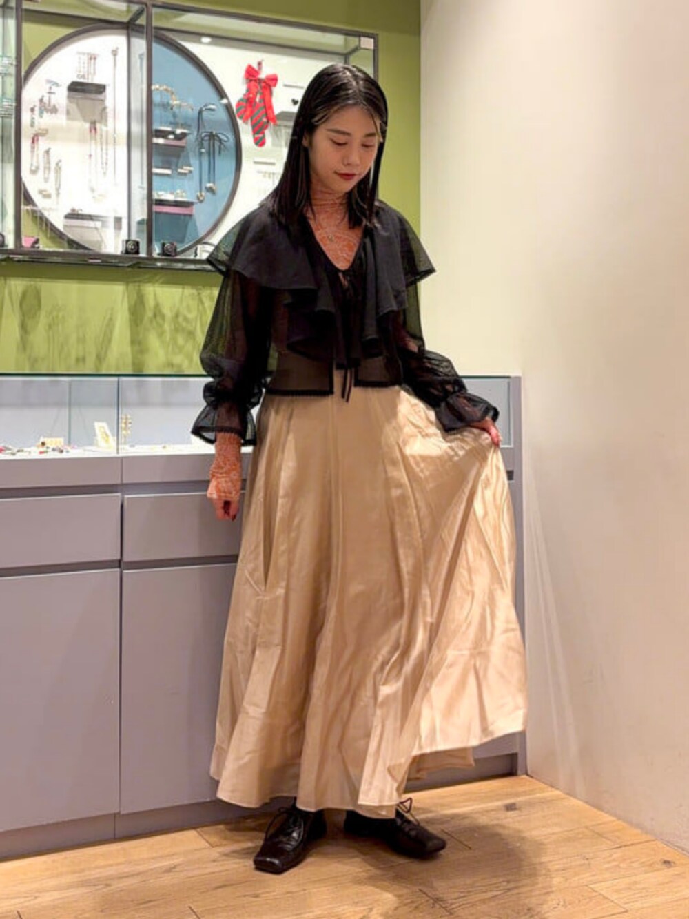 Ray BEAMS(BEAMS WOMEN)のスカート「エアリー シアー フレア スカート」を使ったコーディネート