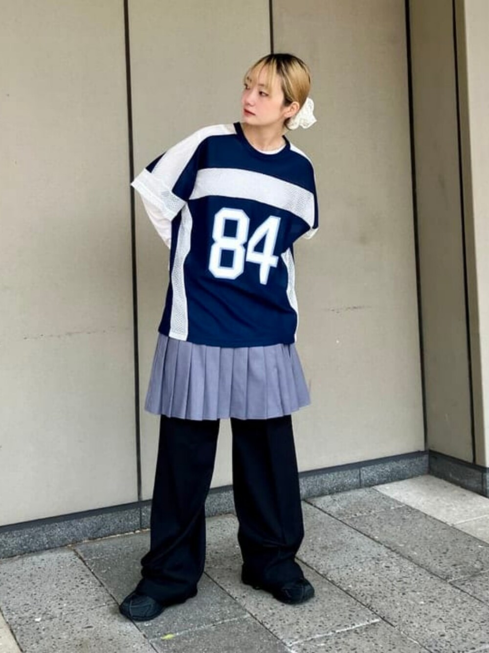 【この夏はスポーティーに!】 ナンバーロゴのメッシュTシャツが、スポーティーでとても涼しく、この夏活躍しそう!大きいのでスポットメンズライクに着てもOK!私はあえてパンツスカートにしてシュシュ合わせの女性らしさを出してみました♡真似してみてください♪ Ray BEAMS / むりょ