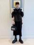 【遊び心を忘れないブラックコーデ】普段から黒をよく着るくらいオールブラックが好きなのですが、ただ黒くすればいいわけでないと思ってます。レイヤードしたり異素材を組み合わせたり、小物であそんだり、楽しんでます♪今回はバッグで猫愛をアピールしました! Ray BEAMS ビームス 新宿 / りかちょび