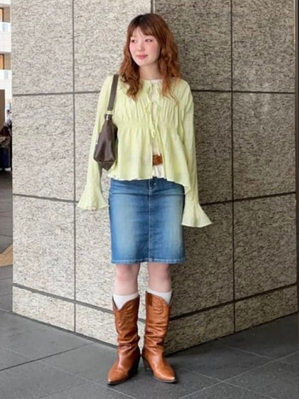 Ray BEAMS(BEAMS WOMEN)のシャツ/ブラウス「シアー シャーリング リボン ブラウス」を使ったコーディネート