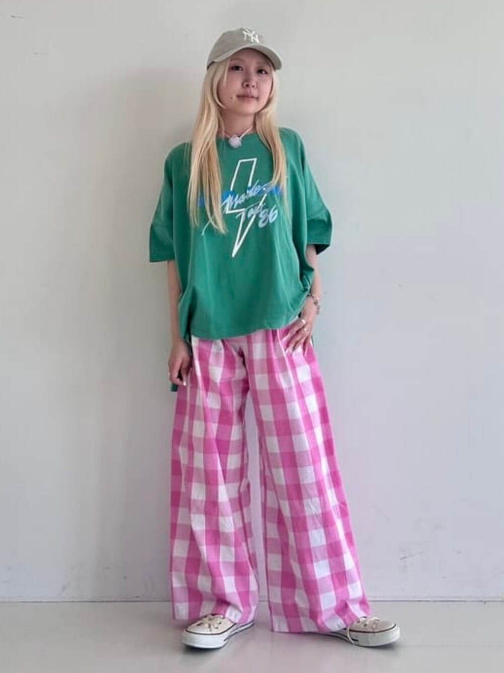 〈GOOD ROCK SPEED〉ビッグTでハッピーカラフルな色合わせ♪おしりが隠れる着丈でリラックスして着られます。パンツは152cmでMサイズ着用、ゆったりしたサイズ感です ©2025 Leidseplein Presse B.V. Under License to Perryscope Productions LLC ビームス 銀座 / haru