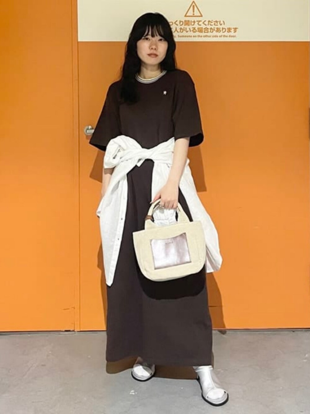 【153センチ/骨格ナチュラル】Gymphlexの別注クルーネック ニットライン ショートスリーブ ドレスを使ったスタイリングを組んでみました♬透け感がなく一枚でさらっと着れるワンピースです!羽織のリネンキーネックシャツは暑い時は腰で巻いても可愛いです♡ ビームス ららぽーとEXPOCITY / おの