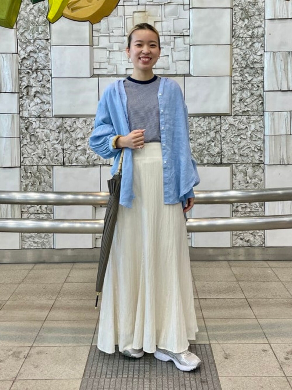 【梅雨を乗り切る!】ブルーとホワイトカラーでまとめた爽やかなコーディネート^^リネン素材のシャツはサラッとした肌触りがとても気持ちいいです♩日除けや冷房対策にも使えるアイテム!〈DANTON〉のボーダーTシャツで更に夏らしさをプラスしました^^ ビームス 千葉 / みまた かお