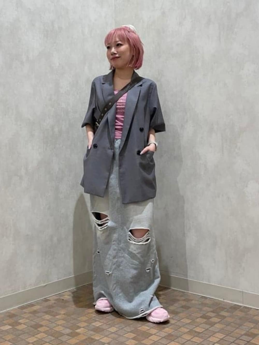 【桜】新入荷の《NIKE》V2Kランと髪色をリンクさせた桜モチベなスタイリング♪軽量でふかふかのインソールのおかげで歩きやすさがハンパないです。バッグは最長にして斜めがけでお花見の時も両手が空きます♪ Ray BEAMS / まゆちゃん