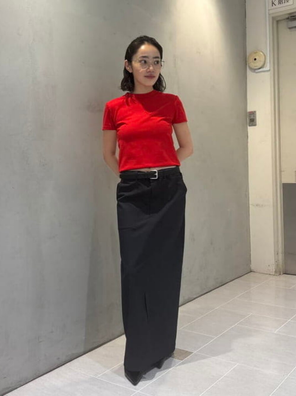 赤のミニTがとっても可愛いです。 ピタッとしたサイズ感で、着丈は少し長めなのでインしても○私は少し折り込んでます。スカートはローライズで履いてます。 ビームス 新宿 / 美紅